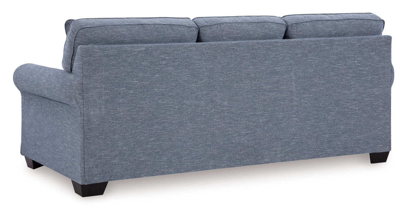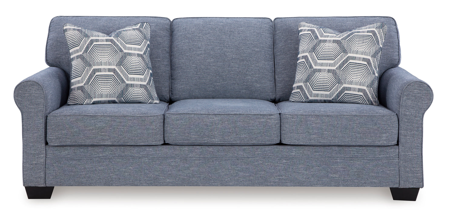 This sofa is defined by comfort, convenience and classic style. Soft to the touch and stain-resistant, the family-friendly Next-Gen Nuvella™ fabric is easy to maintain. And you'll love the universal appeal of its denim-inspired hue. With roll arms adding a dash of traditional flair, the sofa is a simply chic approach to everyday relaxation.